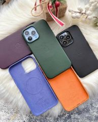 Apple MagSafe Özellikli Deri Kılıf - Titanyum